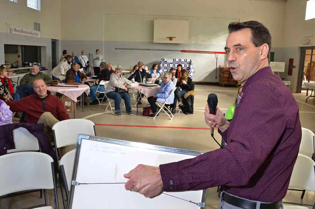 The third annual SweetheART fundraiser was held on Saturday, February 9th at the Center Road school in Mantua Ohio. The event was sponsored by the Mantua Restoration Society staffed by a team of dedicated volunteers. The show featured an array of homemade baked goods and other items for sale. The main event was an auction of artwork donated by local artists. This year the auction also included an array of delectable homemade desserts. Rick Painley returned as the auctioneer and. Skip Schweitzer and Cal Craig were on hand to provide musical entertainment. Proceeds support the ongoing efforts to revitalize the old Center Road school.