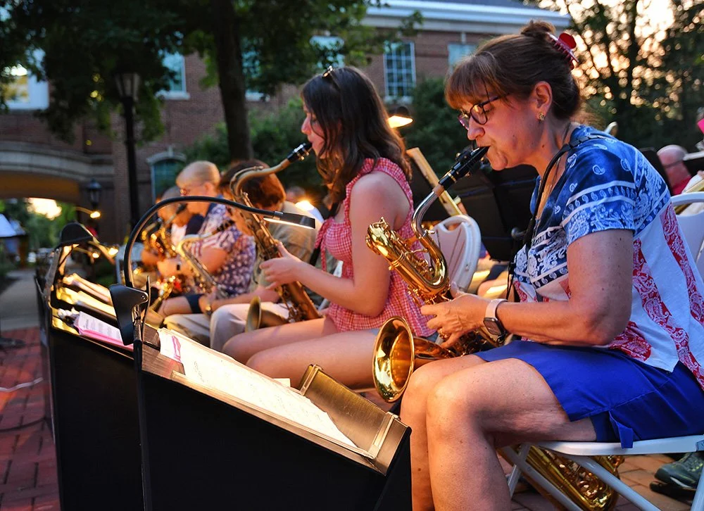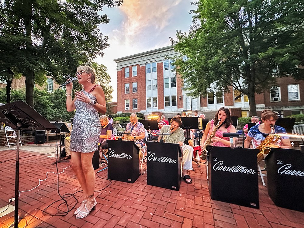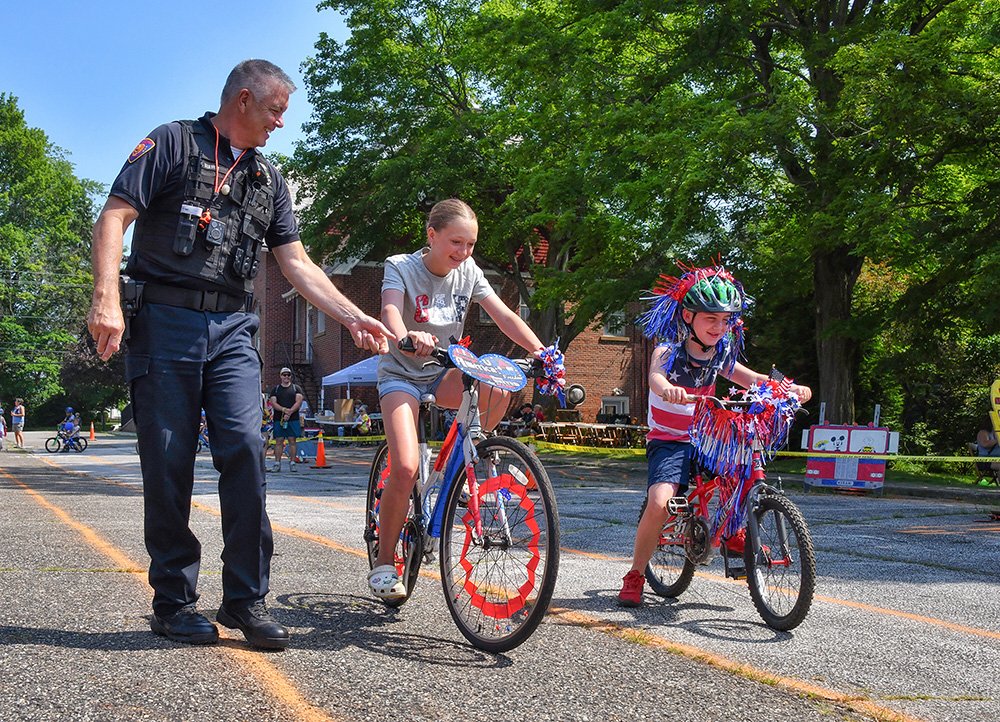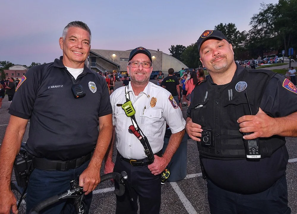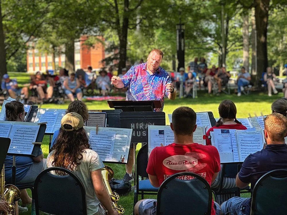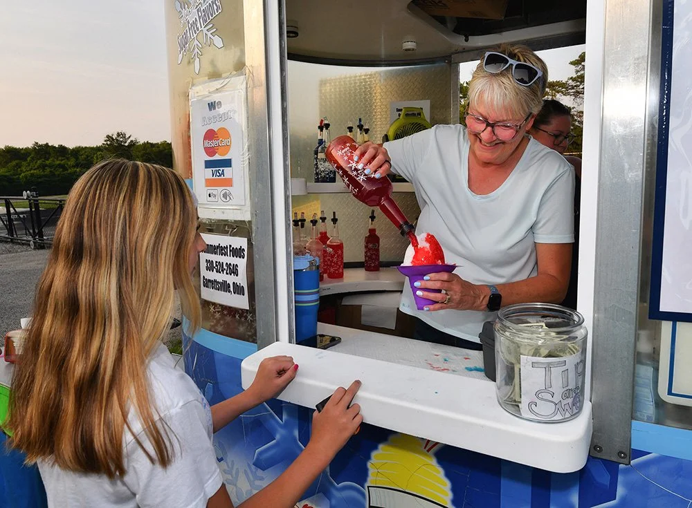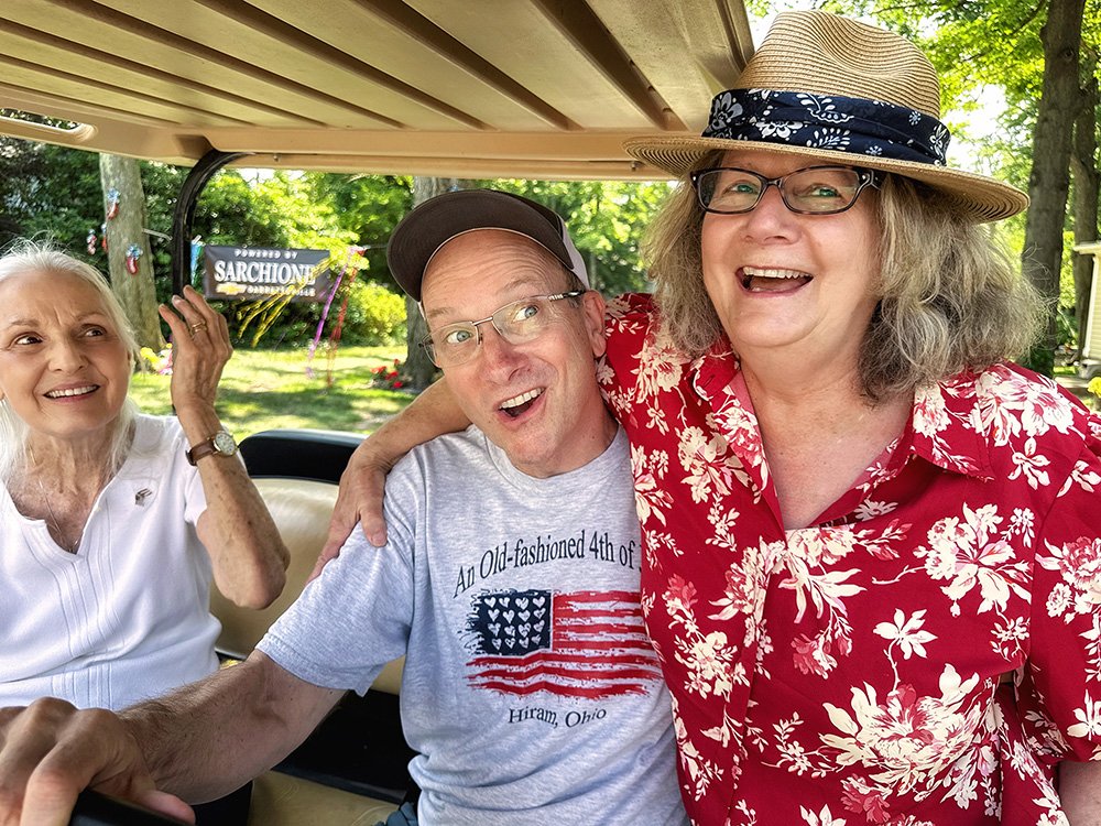 Hiram embraces Independence Day with community-wide activities that serve as the cornerstone event of the summer. This year was no exception with the July 3 evening gathering near the Hiram College athletic field for a concert, food vendors, and balloon artist. Sales were brisk at the commemorative Hiram July 4th t-shirt concession. The event culminated with a welcome from Mayor Anne Haynam, the national anthem sung by Lorena Vines, and the fireworks show to close the evening. July 4 began with the annual softball game where the youthful team completes against the more mature players (the youth won this year). The bike rodeo, cookout, and Hiram Historical bake sale followed over at the Hiram Christian Church parking lot. This was followed the by the parade which featured recently retired police chief Brian Gregory as Grand Marshall and followed by fire trucks and a small army of kids on decorated bikes. Kids activities filled the early afternoon, followed by the Hiram Community band concert under the direction of Issac Winland. The Village was filled with the sounds of the Garretttones in the evening as people danced on the Oliver Plaza during the ice cream social.
